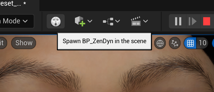 - Select ZenDyn in the Details panel and click the “Add Keyframe” icon to add a keyframe to sequencer for the selected property. Example: “Brows”, “Brows Smoothing”